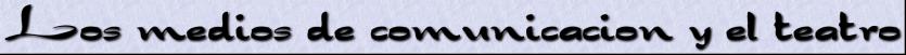 Los medios de comunicación son parte importante en el teatro por la difución que este le da , pero en la actualidad el teatro ha sido desplasado por la televisión , al mismo tiempo esta a tomodo temas demasiado drasticos para la pobleción , sin dejar nada a la imaginación del hombre ,por lo que esta situación social determinante ha llevado a buscar cambios que expresen esta situación fracmentada dentro de un universo altamente tecnológico, esta desplasando al teatro clásico de la actulidad.